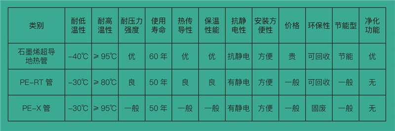 從以上數(shù)據(jù)對比可以看出,石墨烯超導(dǎo)地暖管與傳統(tǒng)PE-RT/PE-X地暖管相比,性能有顯著的提升。在節(jié)能方面表現(xiàn)突出,使用石墨烯超導(dǎo)地暖管可比傳統(tǒng)地暖管節(jié)能30%以上。并且具有自潔功能,可以有效凈化水中的霉菌顆粒等,從而提高管道及整個(gè)系統(tǒng)的使用壽命。